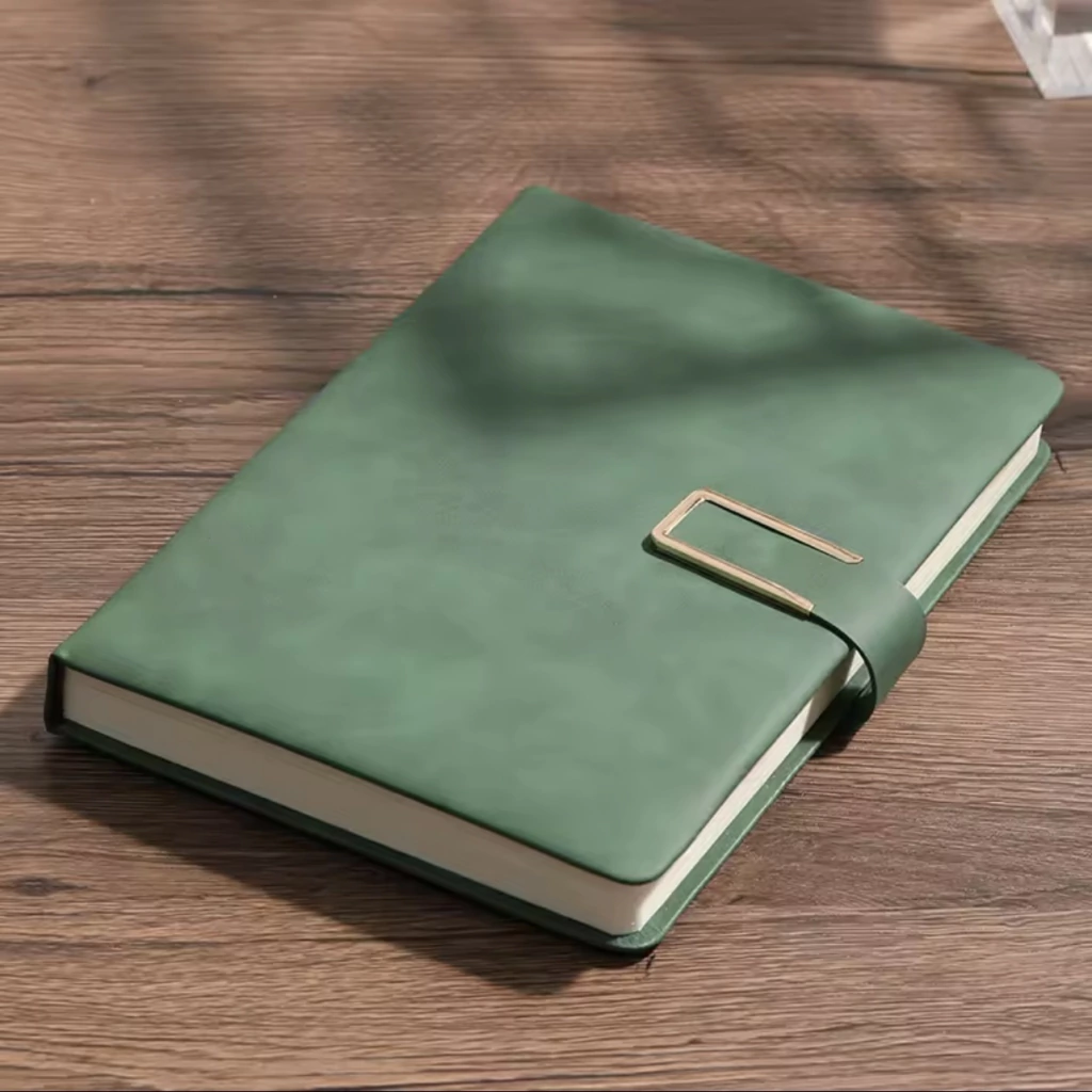 A capa almofadada em couro PU transmite resistência e um toque macio, unindo durabilidade ao charme de um acabamento refinado. No tamanho A5, é compacto o suficiente para acompanhar você em qualquer lugar, sem abrir mão do espaço interno para suas ideias fluírem com liberdade.