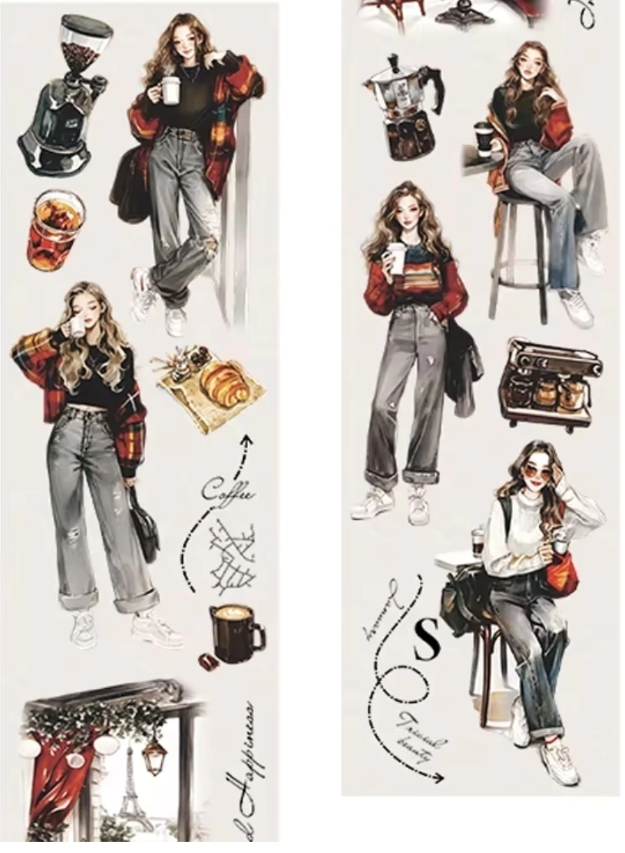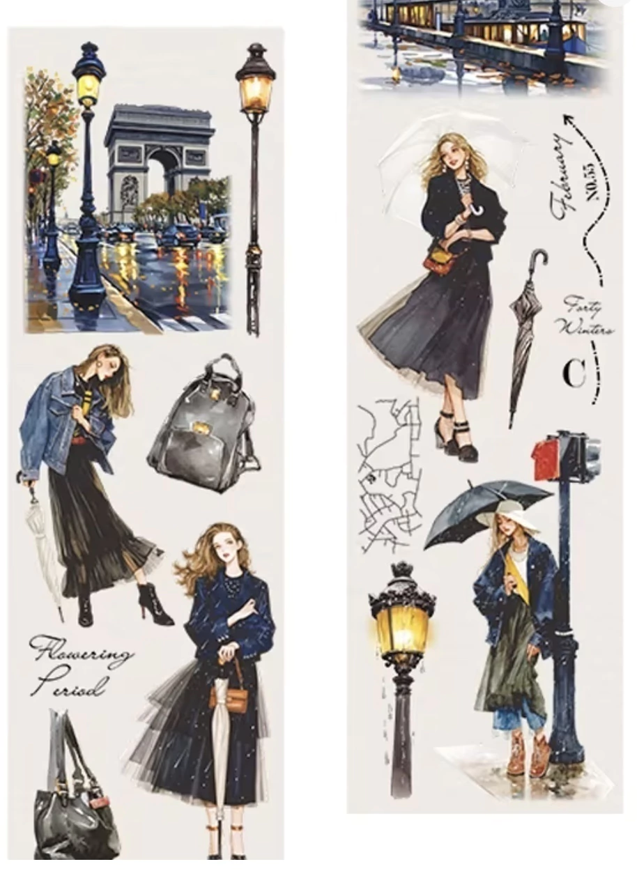 Descubra a PET Tape Meninas - 60mm, uma fita em material PET com fundo transparente que traz delicadas ilustrações de meninas em diversos cenários cotidianos.